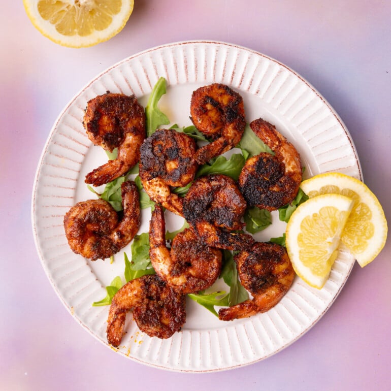 I find blackened shrimp to be super versatile and serve it up with whatever I have on hand. Sometimes it’s mashed potatoes and a vegetable, sometimes I throw them in tacos or on a sandwich, and sometimes it’s in a salad or bowl. Get creative with it!
